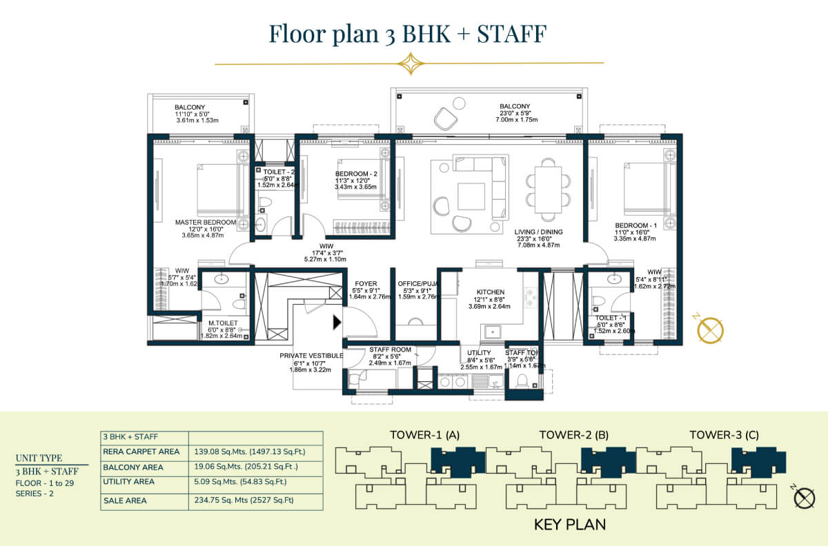 Configuration: 3 BHK, 3 BHK + Staff, 4 BHK + Staff