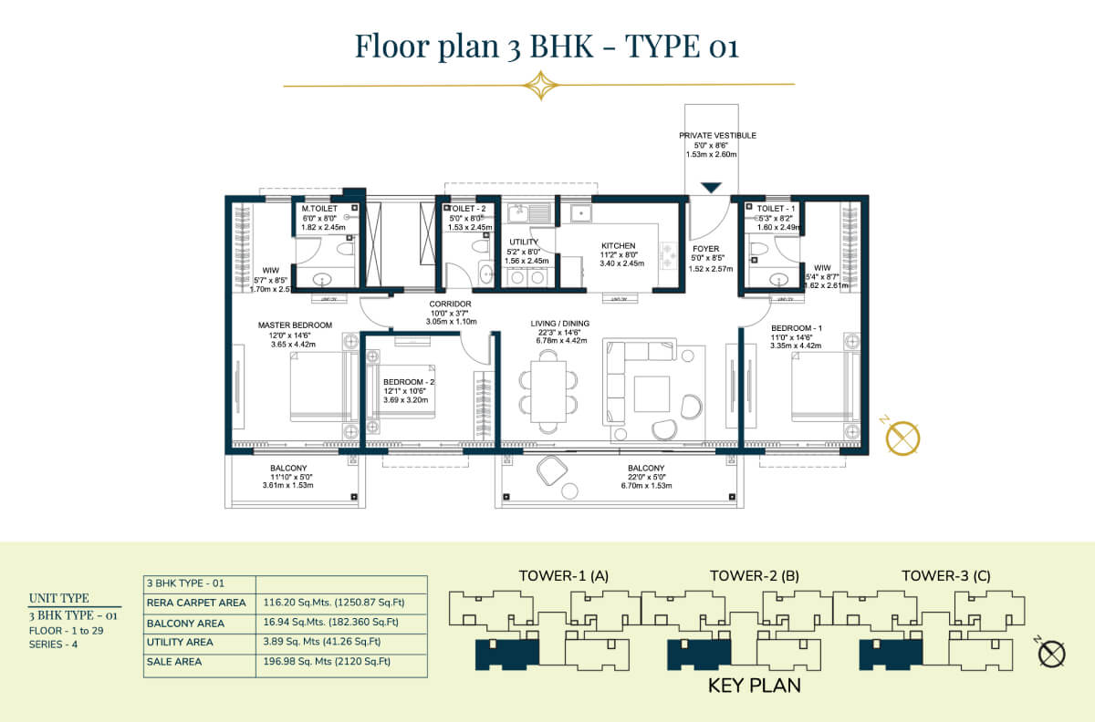 3 BHK – Type 01 | 2120 sq. ft | On Request |