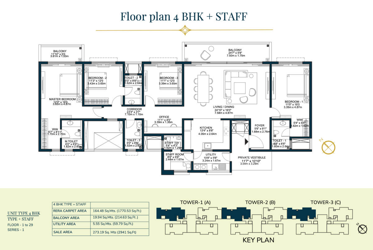 4 BHK + Staff Room | 2941 sq. ft | On Request |